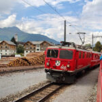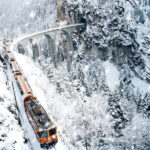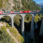 A viagem, famosa por ser feita no trem expresso mais lento do mundo, conduz os viajantes pelos Alpes em cerca de oito horas, passando por 91 túneis e mais de 290 pontes.