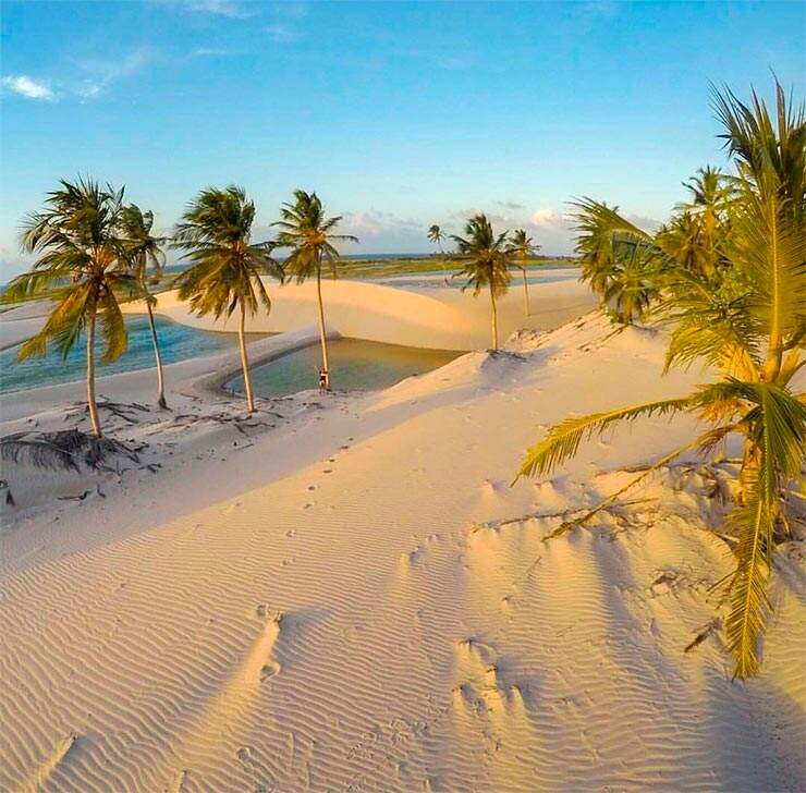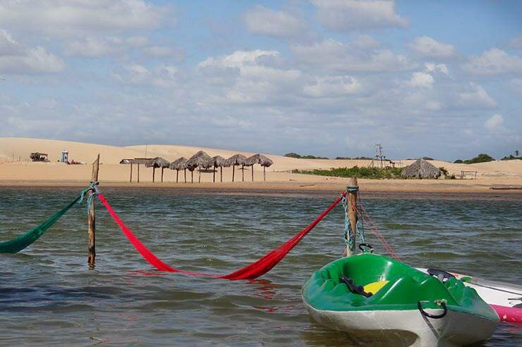 Jericoacoara – ou simplesmente Jeri – tem ambiente aconchegante, com ar rústico, dunas, mar, lagoas e mangues. Destino certo para quem adora velejar e praticar kite e windsurfe possui ventos fortes e constantes. De pés descalços, afinal sapatos não combinam com as ruas sem calçamento e cheias de areia, conheça restaurantes deliciosos, participe de festas e faça compras em lojinhas de artesanato. As atrações mais famosas são a Pedra Furada e a Duna do Pôr do Sol, onde você irá apreciar o espetáculo sem igual do sol se despedindo junto ao mar.