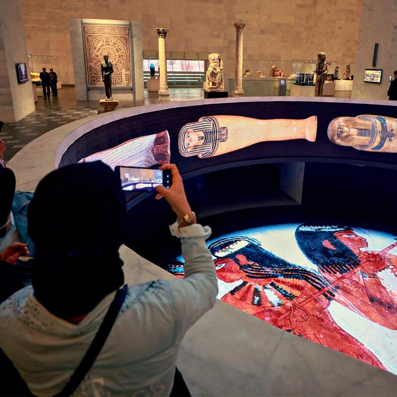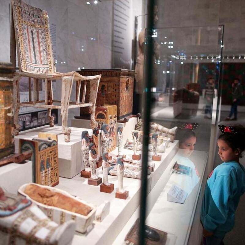 O recém inaugurado Museu Nacional da Civilização Egípcia – MNCE exib as múmias de 18 reis e quatro rainhas do Egito, junto com seus sarcófagos, papiros e outros artefatos.