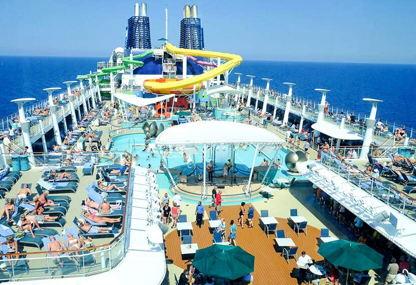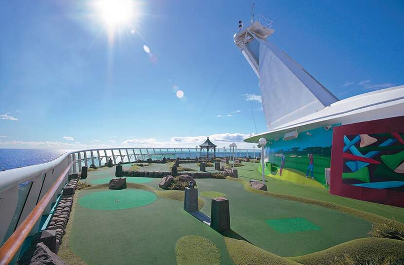 A diversão dentro de um navio de cruzeiro é muito variada. São cassinos, cinemas, piscinas e até campos de golfe.