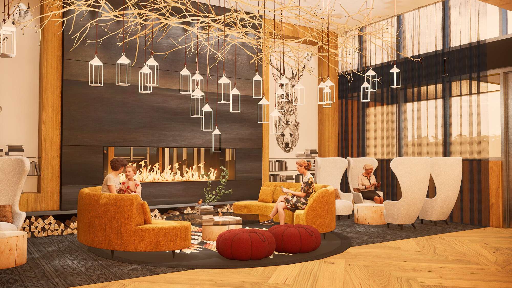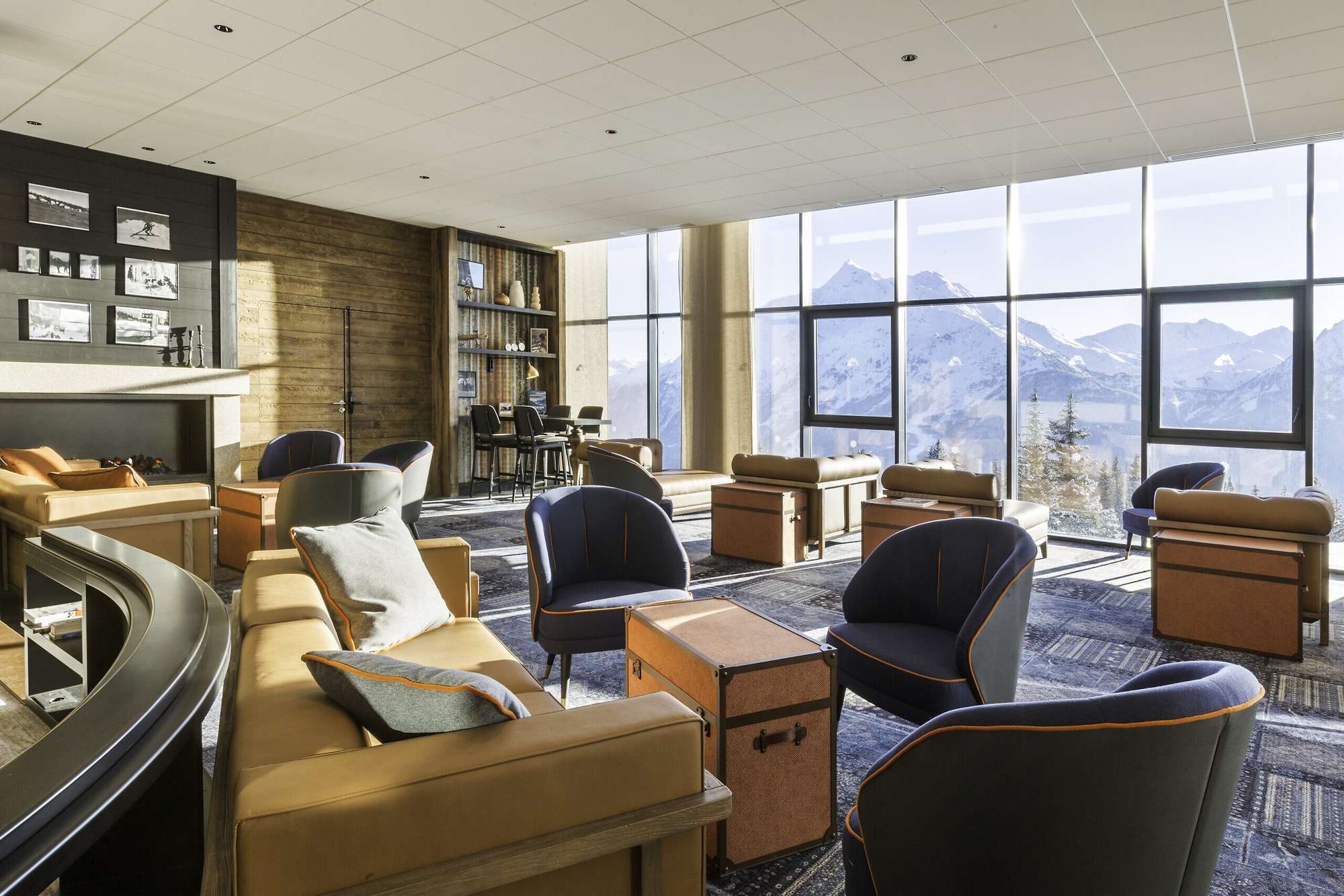 O design de interiores em estilo savoyarde nos remete à fabulosa história do lendário Passo do Pequeno São Bernardo – desde a travessia dos Alpes feita por Aníbal e seus elefantes até os peregrinos que atravessam as altas montanhas; uma cena retratada no afresco da recepção.