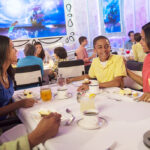 As opções gastronômicas a bordo de um cruzeiro são, para muitos, um dos grandes atrativos deste tipo de viagem. Diversos restaurantes e cafés servem desde refeições formais em ambientes sofisticados até pratos mais simples em espaços casuais. Há opções para todos os gostos – literalmente! Outra vantagem é não ter que se preocupar em planejar cada refeição, já que elas estão disponíveis o dia todo. O mais difícil é escolher uma só!