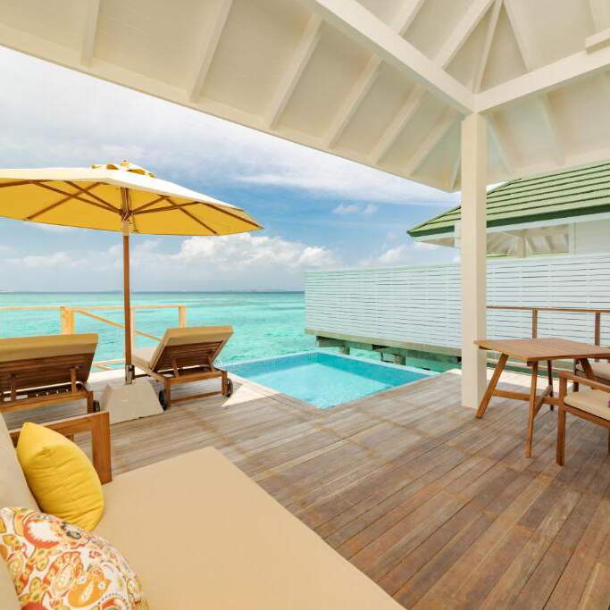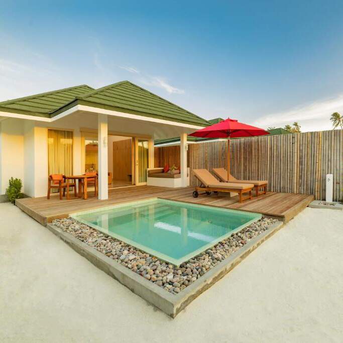 Localizado a 30 minutos de voo de Malé mais 20 minutos de barco até a ilha, o resort oferece estúdios e villas com terraço privativo e piscina privativa. Todas as unidades têm vista para a paisagem tropical do resort.